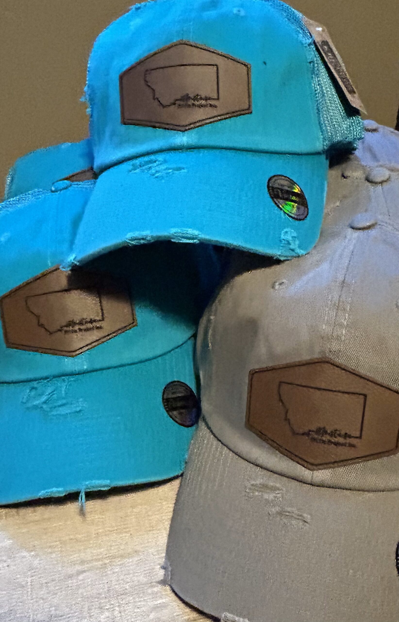 Distressed like your life. This brand-spankin’ new baseball hat looks worn by design. No need to tell your business, just wear the hat. DISTRESSED, matching the outfit and representin’ Montana Pittie Project with a leather patch up front.  (We love you).
